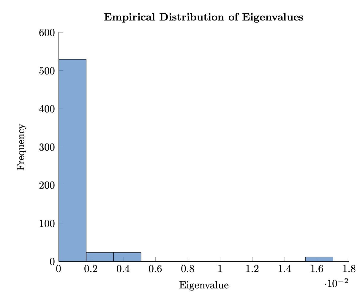 Particularly, even with observations that are linearly independent, we see a peak of near-zero eigenvalues. In recent years, the tools of Random Matrix Theory (RMT) have been implemented in math finance to study this phenomenon. Authors like Bouchaud and Potters [4] present a methodology based on RMT to identify random, and hence noisy, eigenportfolios. Doing so seeks to modify the covariance (correlation) matrix to eliminate eigenportfolios with erroneously low contributions to risk. This effect is particularly important when considering mean-variance optimization.